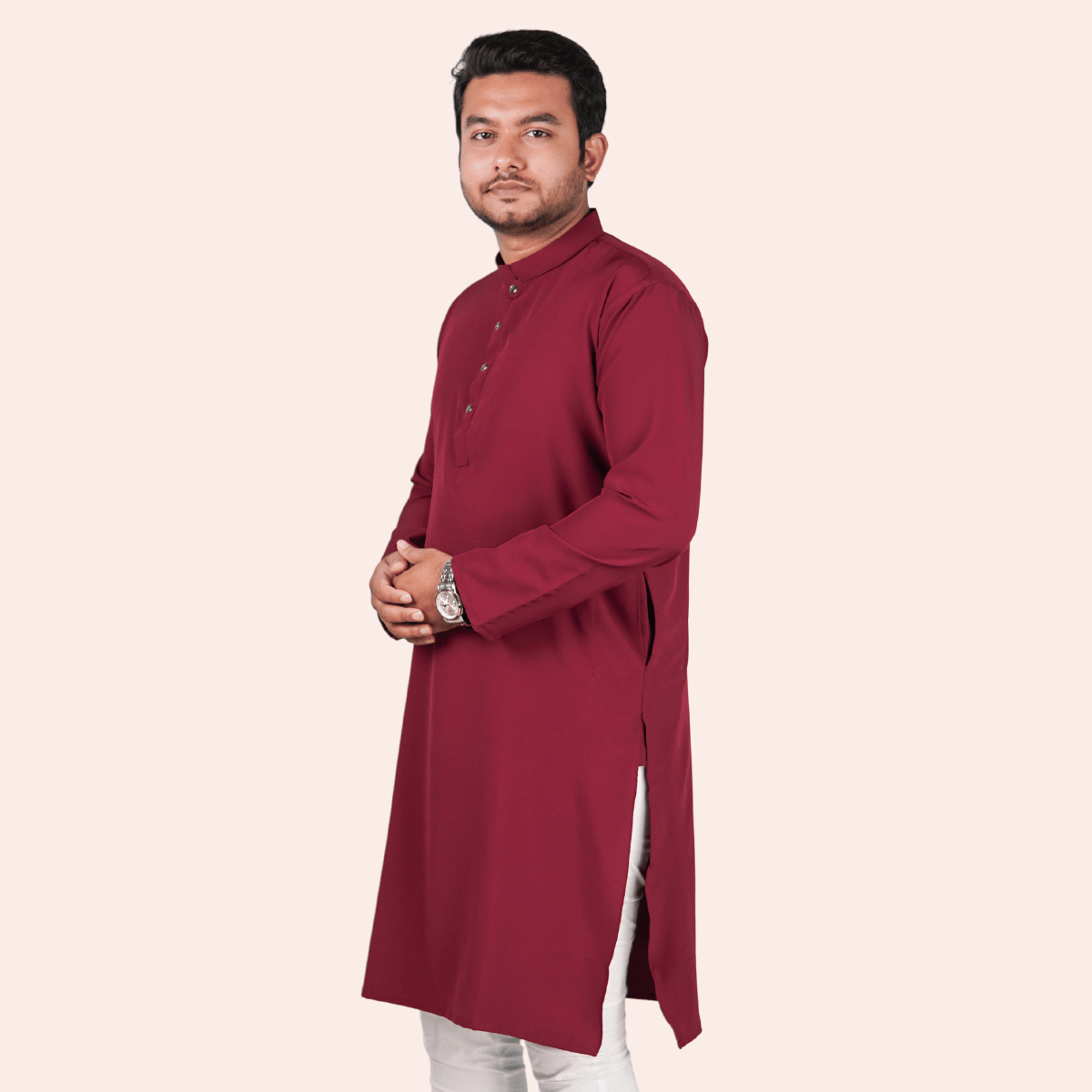 মেরুন কালার অরিজিনাল প্রিমিয়াম চায়না ফেব্রিকের সলিড পাঞ্জাবি