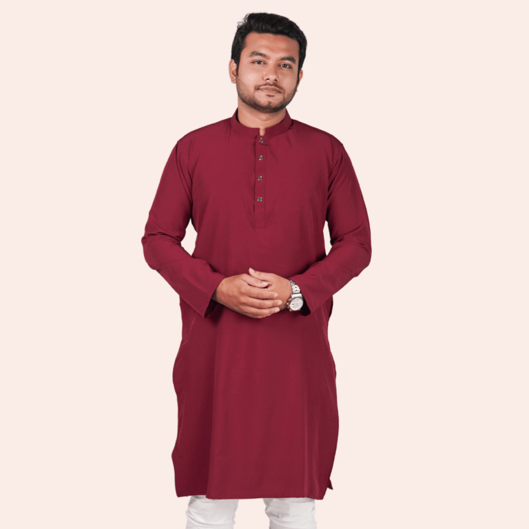 মেরুন কালার অরিজিনাল প্রিমিয়াম চায়না ফেব্রিকের সলিড পাঞ্জাবি